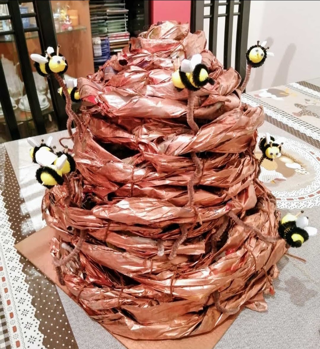 - para el cuerpo de las abejitas, tela de punto de color dorado